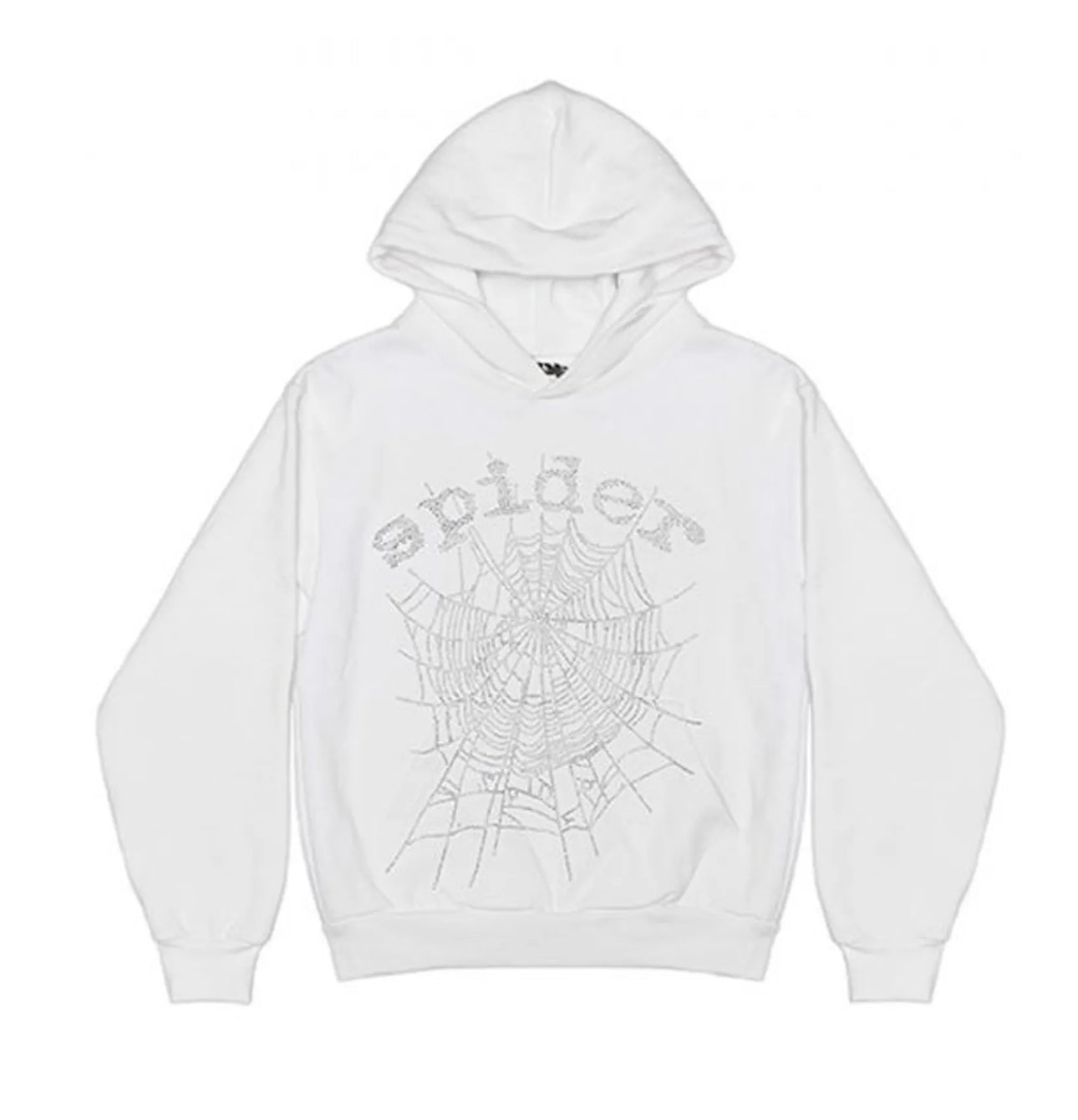 Sp5der OG Rhinestone Logo Hoodie White